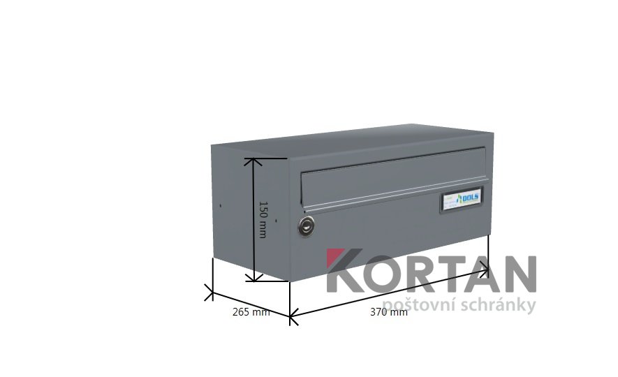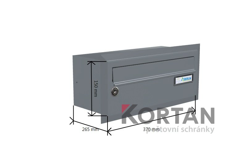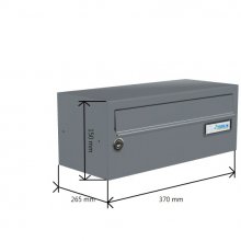 Popis realizace: Nástěnné schránová sestava ze schránek typu DLS E- 011 (325 ×240\80) v provedení RAL 7040 šedá matná standard.
