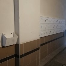 Popis realizace: Montáž dvou ks nástěnných schánkových sestav bez opláštění. Byl zvolenen typ schránek G-01 v uspořádání 8 sloupců x 4 řady. Barevné provedení sestavy je RAL 7040\7035 matná standard. Montáž pro SVJ, ulice Pod Altánem 2406 v Praze.