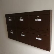 Popis realizace: Na přání zákazníka jsme zhotovili 2 schránkové sestavy nástěnné bez opláštění z DLS H-012(360x310x90), barva RAL 8017 matná standard. Sestava uspořádána do 3 sloupců x 2 řady.